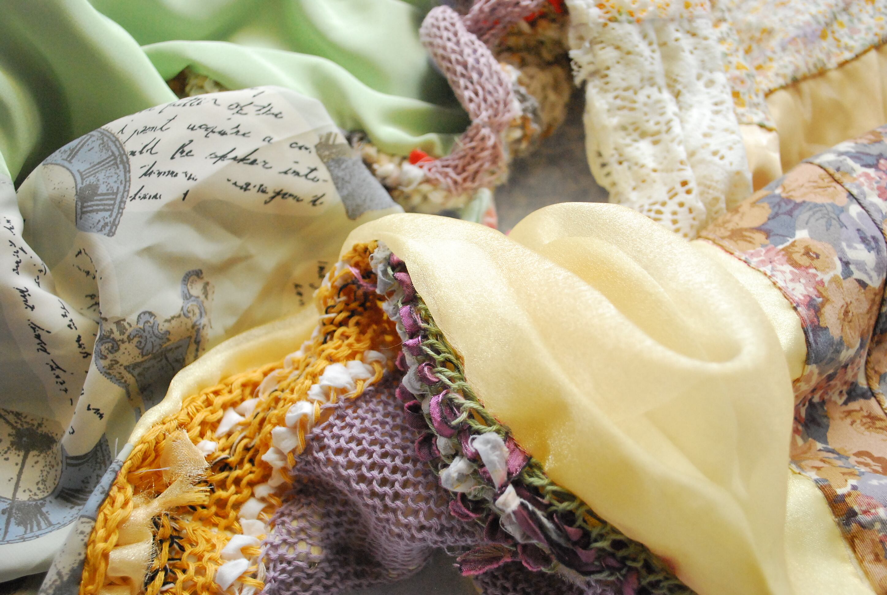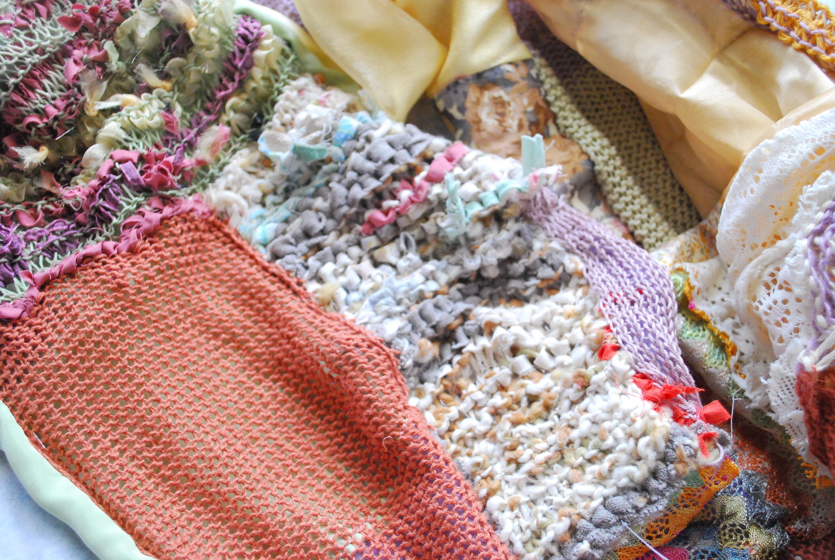 素材:糸は綿、リネン。古着はウール、化学繊維なども混ざったミックスです。