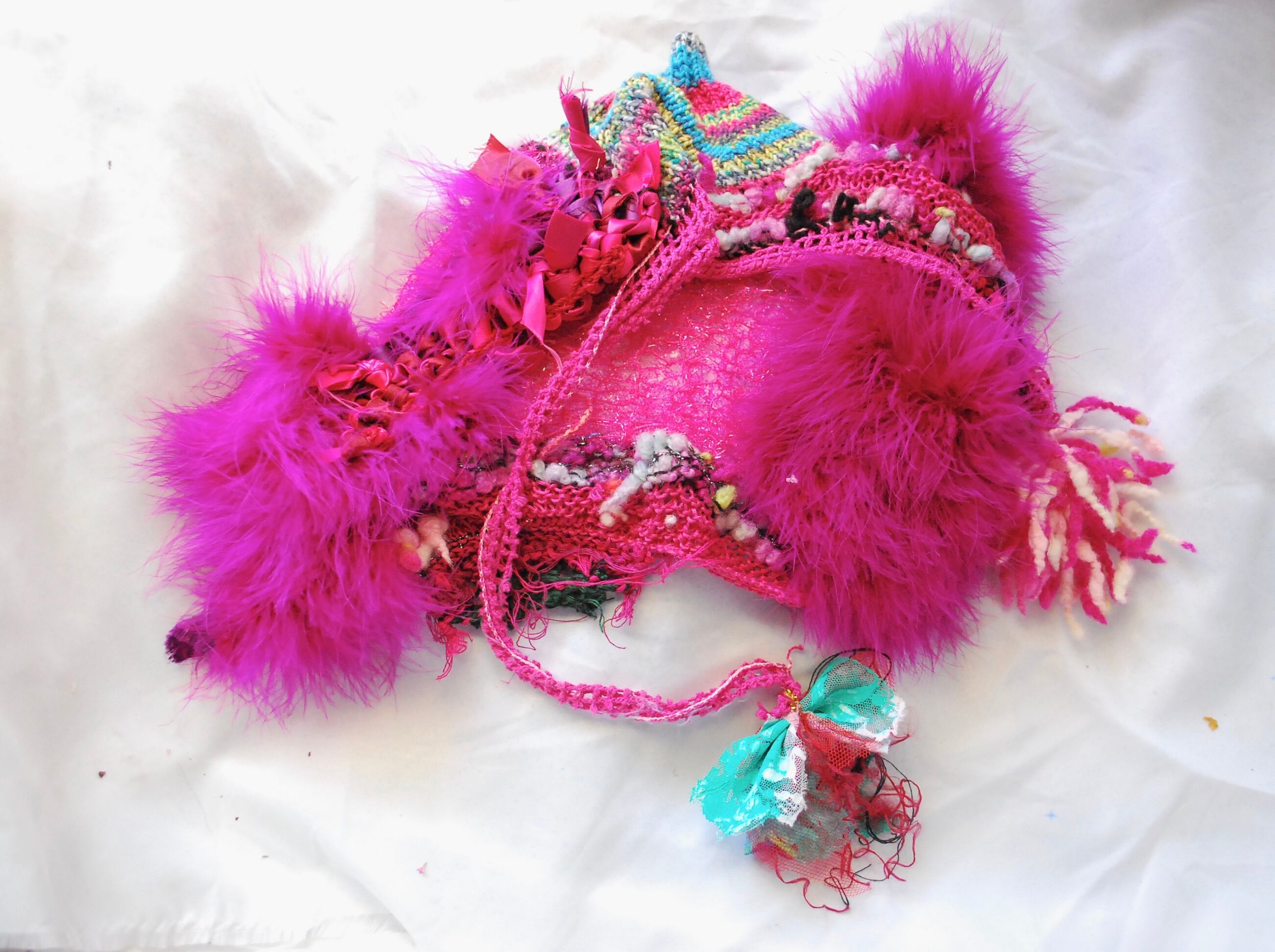 すきな素材と色を編み込んだ帽子。