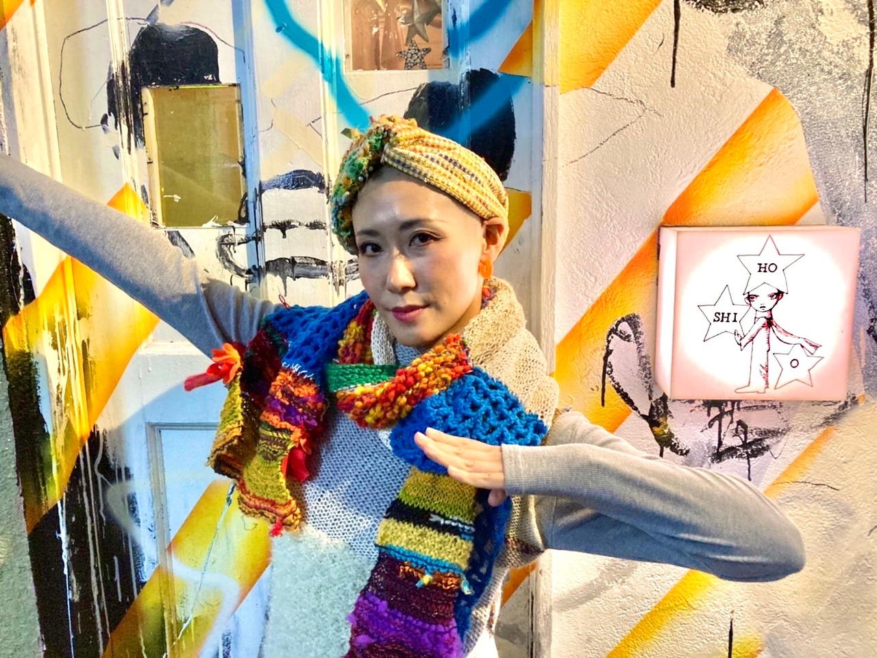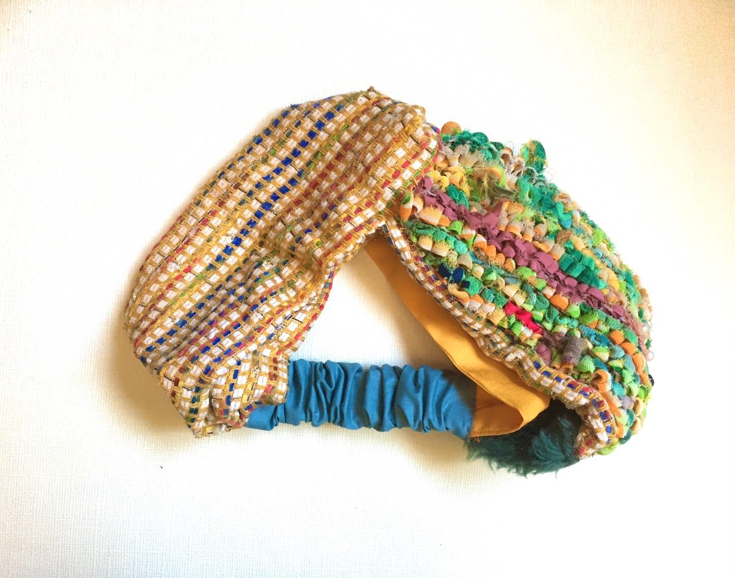 編み物と素材をわたし、ナルミがビーズを手縫いでつけ、ヘアバンドの形に仕立てました。