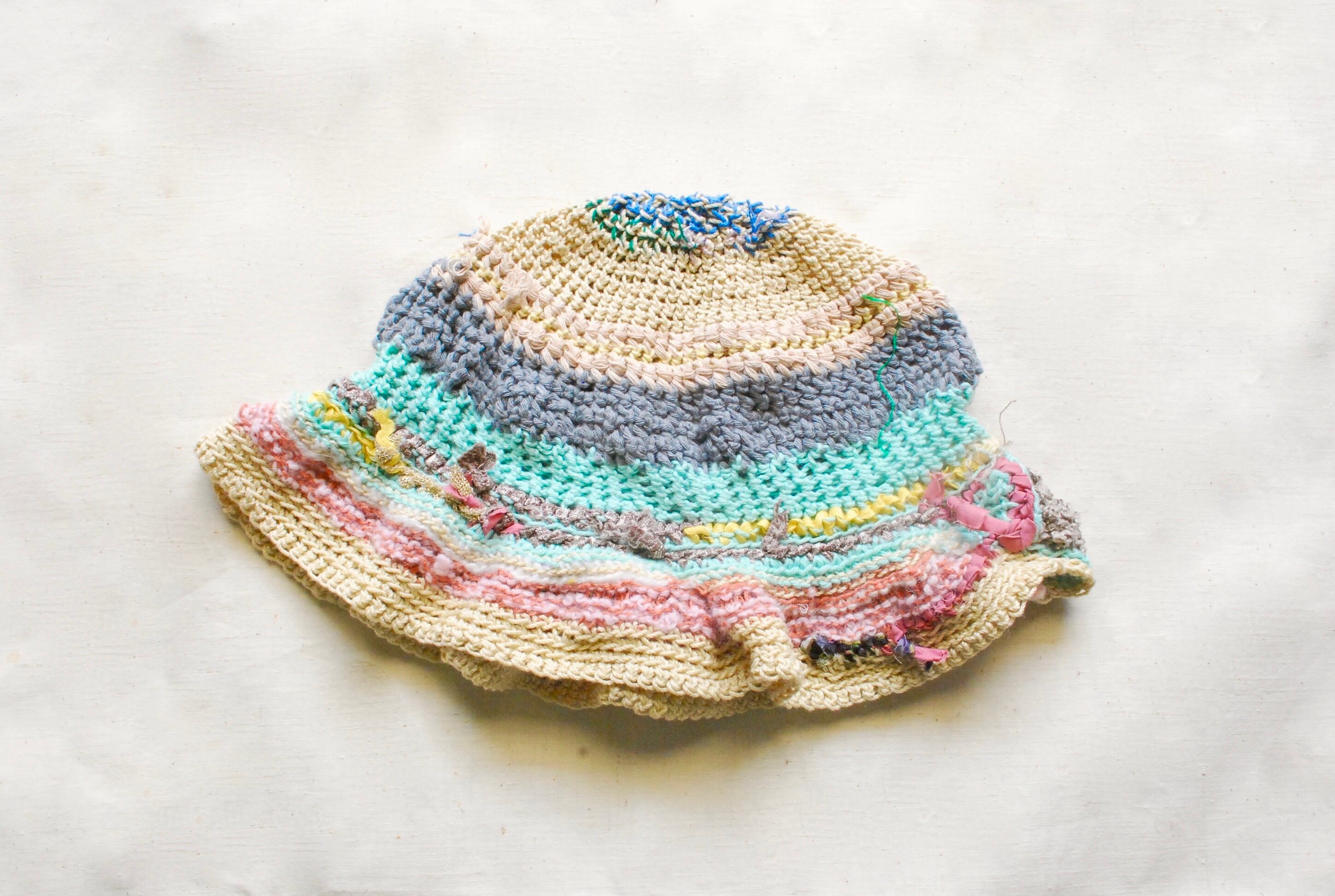 麦わらぼうしからイメージした、手編みのコットン帽子。