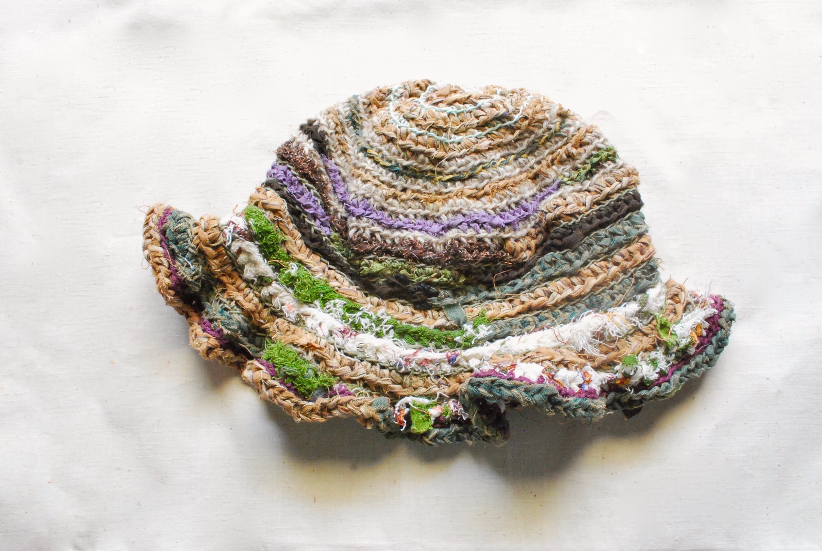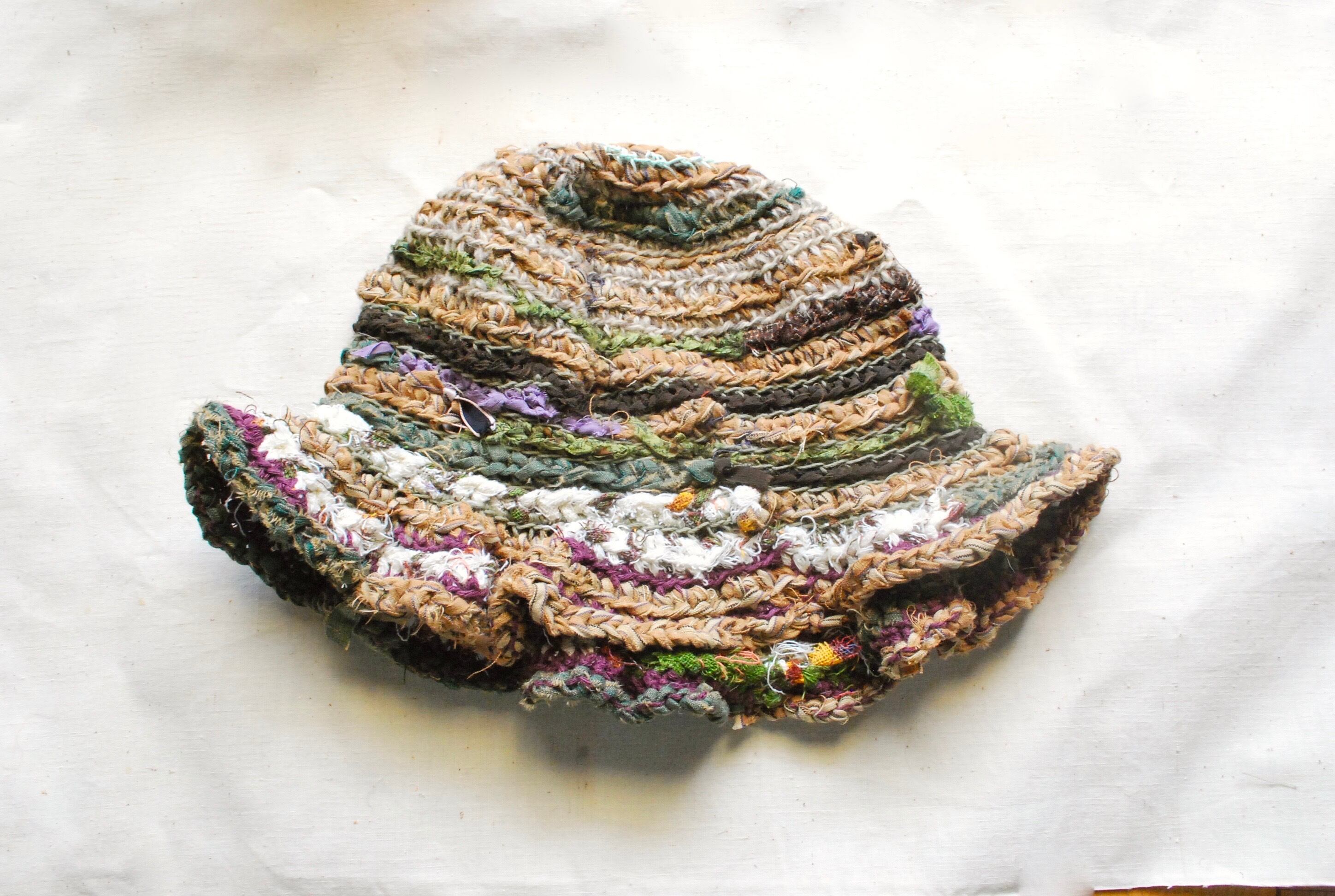 麦わらぼうしからイメージした、手編みのコットン帽子。