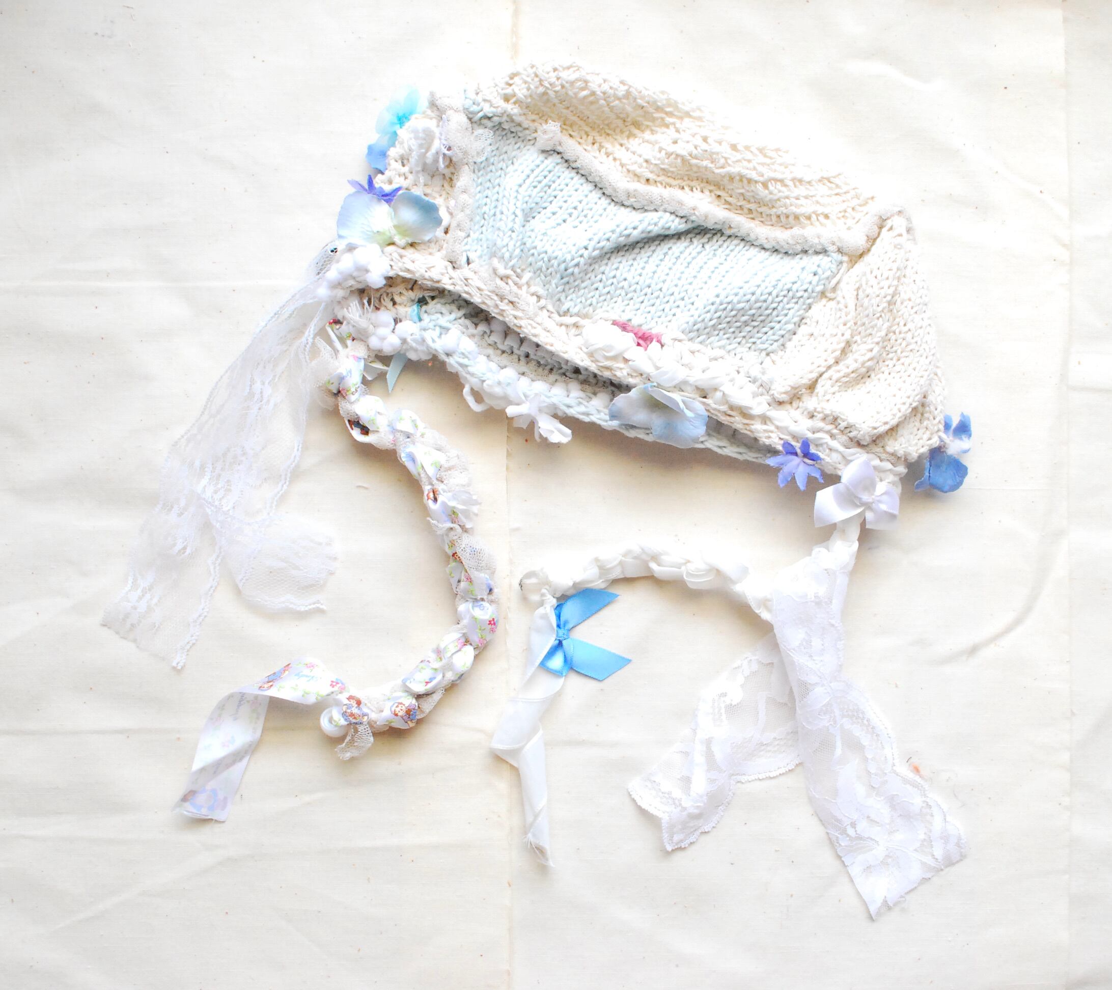 手編みのコットン帽子。